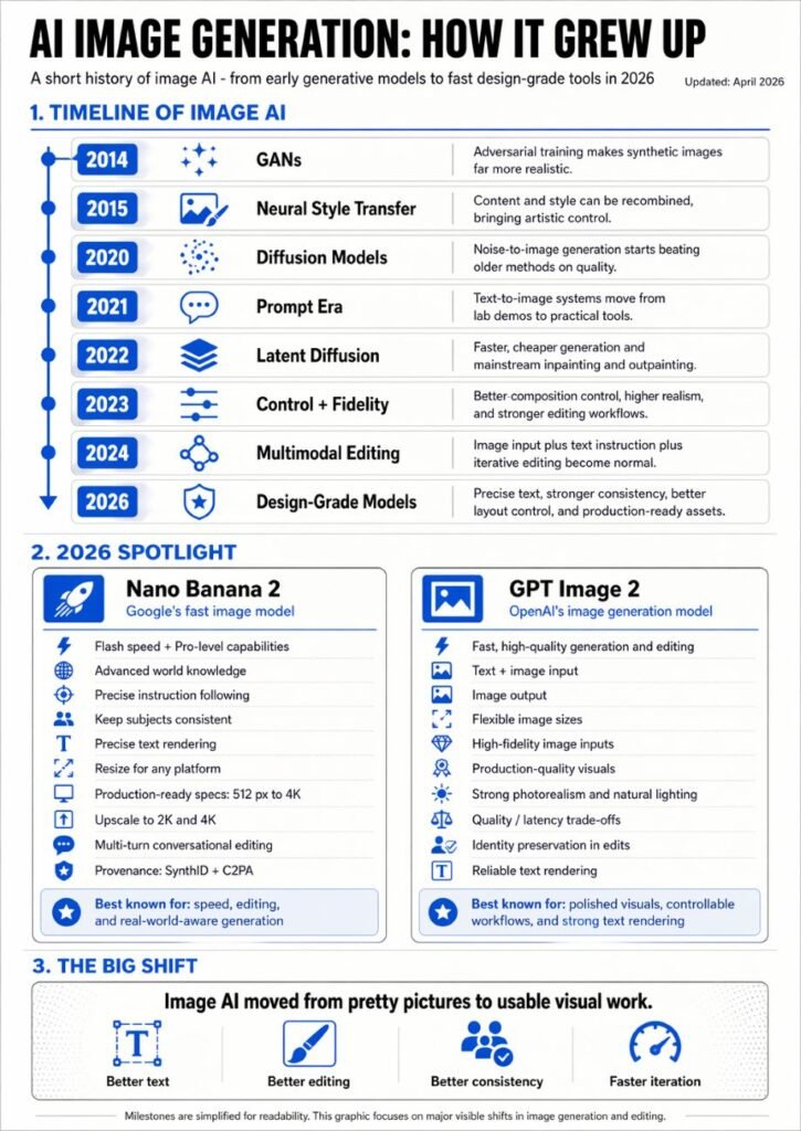 OpenAI introduced ChatGPT Images 2.0 in April 2026, showing examples across realistic photography, typography, manga, posters, infographics, comics, product layouts, and multilingual visual text. [OpenAI]