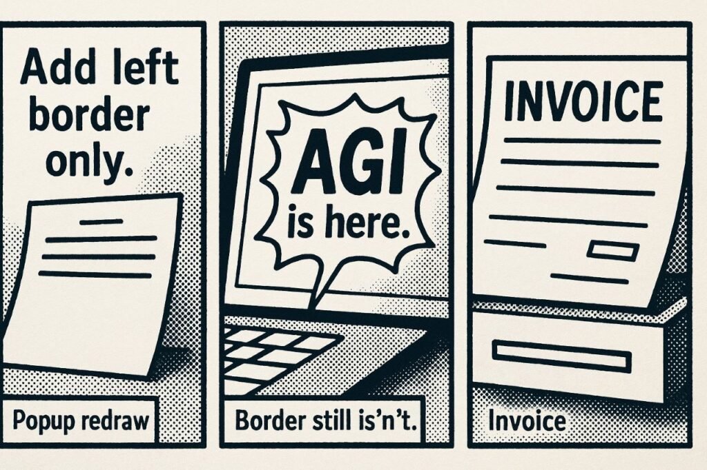 - Scene two: Pop-up: “AGI is here.” Border still isn’t.