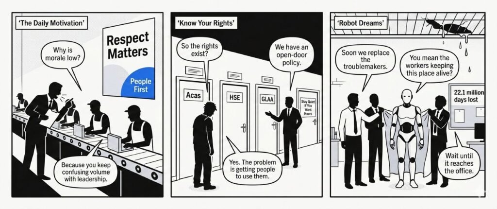 In Britain, and to me especially since Brexit, it feels like shouting at workers and disrespecting the people who keep production running has become too normal in some places. Managers and team leaders talk down to people as if the ones doing the actual work matter less, when without them the whole line would stop. That is the absurdity. Companies cannot wait for robots, but barely seem to think that once AI becomes strong enough, many white-collar jobs and management layers may be hit before everything on the factory floor is replaced. My own view is that office roles could be smashed first within a few years, while many physical jobs may take longer. The people barking orders today may be much closer to redundancy than they imagine. What I see is not one simple cause but a rotten habit fed from different directions. Some of it comes from old authoritarian reflexes, the idea that the boss stands above the worker and fear is somehow a leadership tool. Some of it comes from the ugly habit of treating immigrants and outsiders as if they should endure more, complain less and be grateful for whatever they get. It is not everyone, but it does not need to be everyone. It only takes enough of that mindset to turn a workplace toxic. What makes it worse is that many workers do not fully know their rights, are not used to British workplace protections, or stay quiet because they think speaking up will cost them the job that pays the rent. And that is where the whole theatre becomes pathetic. The protections are already there on paper. Acas gives free and impartial advice on employment rights and workplace conflict. HSE says employers have a legal duty to protect workers from stress by doing a risk assessment and acting on it. The GLAA exists to stop worker exploitation and investigate abuse, forced labour and illegal labour provision. Poor working environments, excessive stress, low control, discrimination and insecurity are recognised risks to mental health, not signs that a worker is somehow weak. So when government wonders why people are worn down, burnt out, quiet and anxious, the answer is often right under its nose. Too many workers stay silent, too many companies get comfortable, and too many managers mistake intimidation for leadership. That is why more investigations, more audits and tougher penalties start to look less like overreaction and more like basic hygiene.