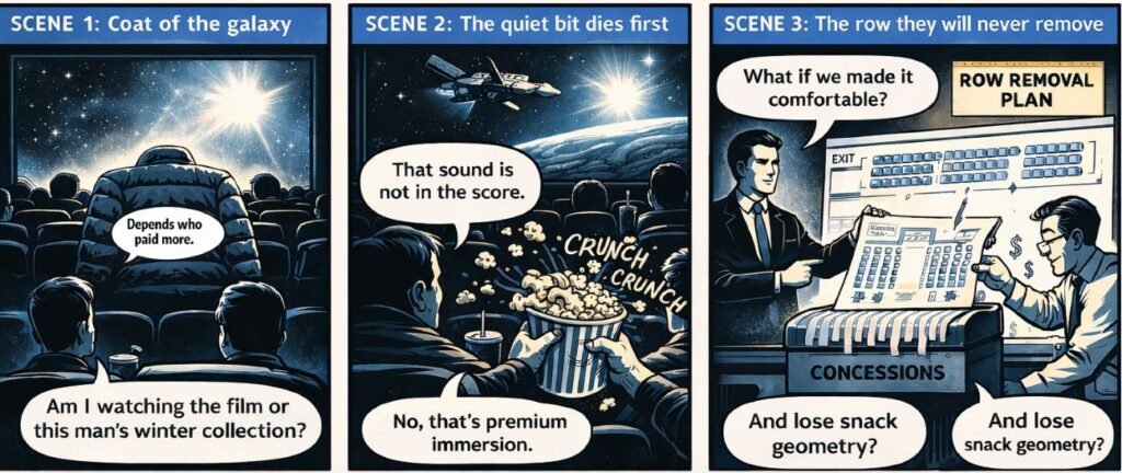 - A premium IMAX ticket still leaves you negotiating with a stranger’s coat for basic sightlines.