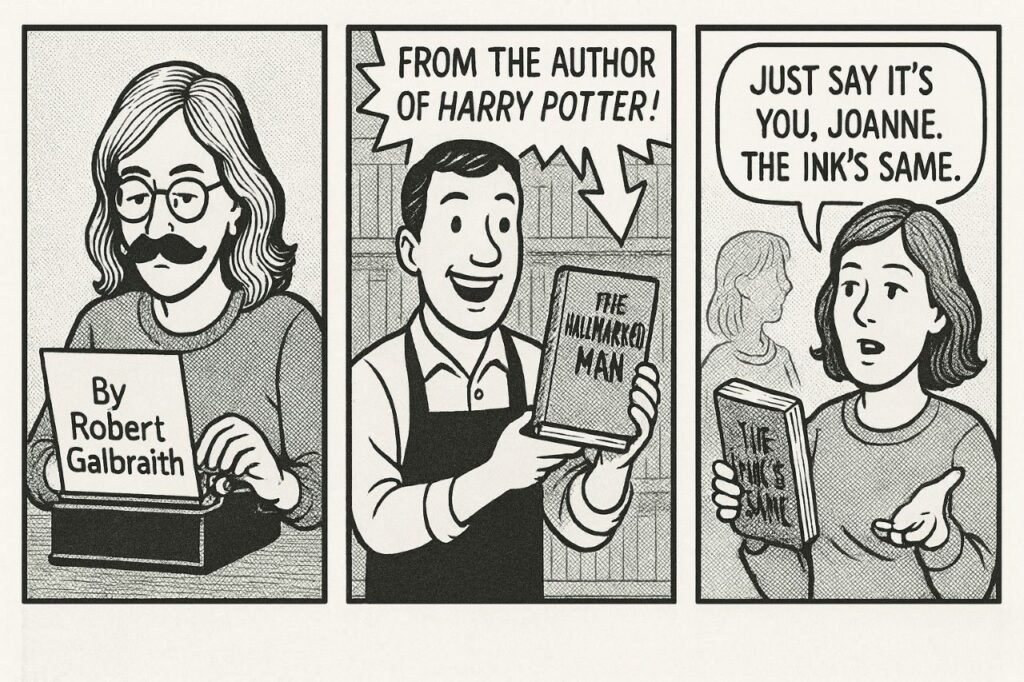 - Claiming anonymity while the marketing team plasters “From the author of Harry Potter” in invisible neon.